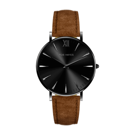 Reloj elegante con acabado en oro rosado y correa marrón, moderno y distinguido.